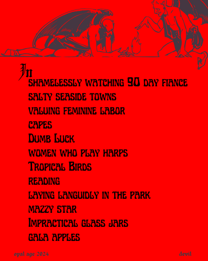 Creating Opal Age replaced the void of inspiration we needed to overcome to move forward. Feeling trapped by the push for productivity makes relaxation feel indulgent. So does taking the time to work on a creative project -- at least to me, when it feels like there are so many other things to do. But there is no such thing as too indulgent in our realm. Let the Devil out.